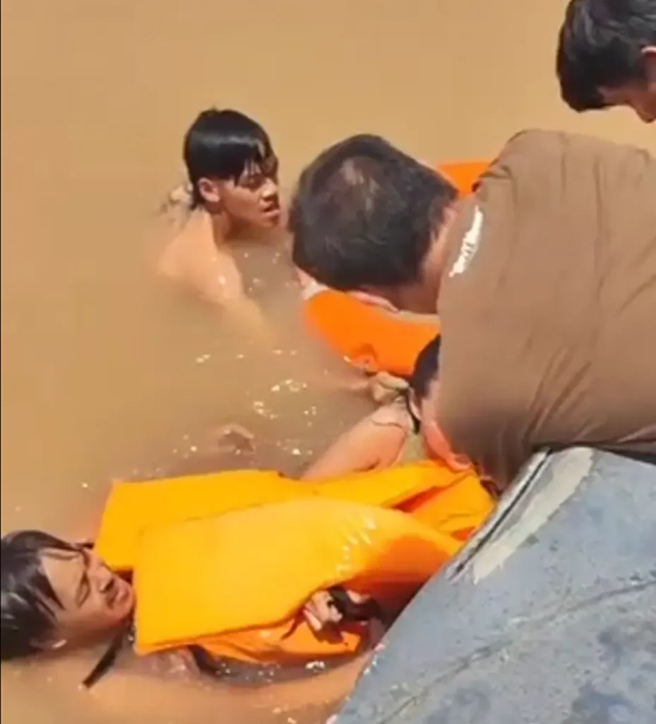 ด้วยความเป็นห่วง พนักงานเรืออย่างนายชาคริช สาคะริชานนท์ TSB และนายสุพักษ์ ภู่เสือ พนักงาน ออโต้บัส เซอร์วิส จึงตัดสินใจคว้าห่วงยาง กับเสื้อชูชีพ รีบว่ายไปกลางแม่น้ำเพื่อช่วยเหลือชีวิตคนก่อน เมื่อพาตัวผู้หญิงคนดังกล่าวขึ้นจากน้ำได้แล้ว ก็พามานั่งพักบนเรือได้อย่างปลอดภัย พร้อมประสานเจ้าหน้าที่ตำรวจ กู้ภัย เข้าดูแลต่อไป