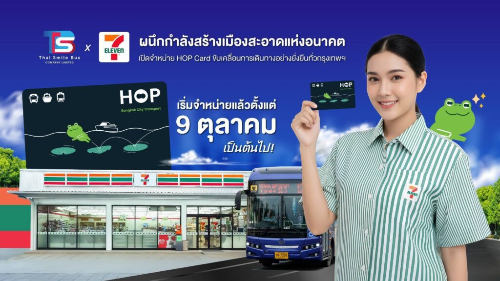 บริษัท ไทย สมายล์ บัส จำกัด (TSB) ผู้นำด้านระบบขนส่งสาธารณะพลังงานไฟฟ้า EV100% จับมือ บริษัท ซีพี ออลล์ จำกัด (มหาชน) ผู้บริหารร้านสะดวกซื้อ 7-Eleven เปิดจำหน่าย บัตรโดยสาร HOP Card ในร้าน 7-Eleven ทั่วกรุงเทพฯ และปริมณฑล 5 จังหวัด เพื่ออำนวยความสะดวกให้ประชาชนเข้าถึงระบบขนส่งสาธารณะพลังงานสะอาดได้ง่ายและทั่วถึงยิ่งขึ้น
